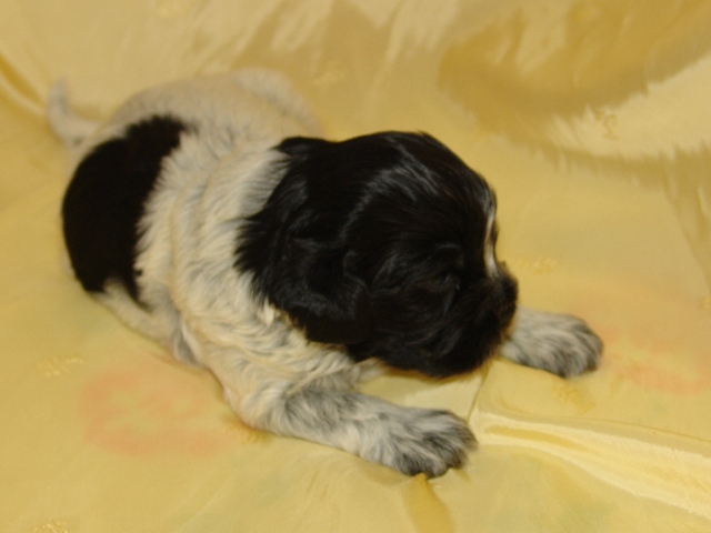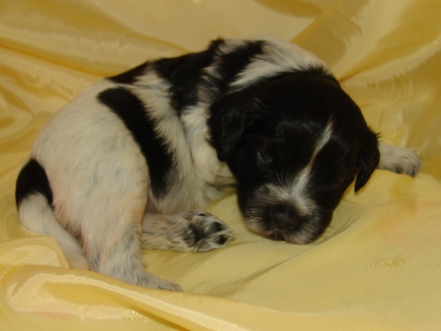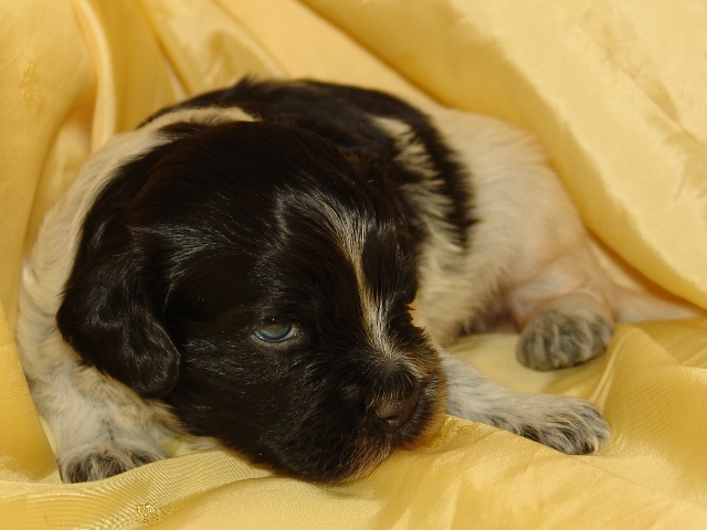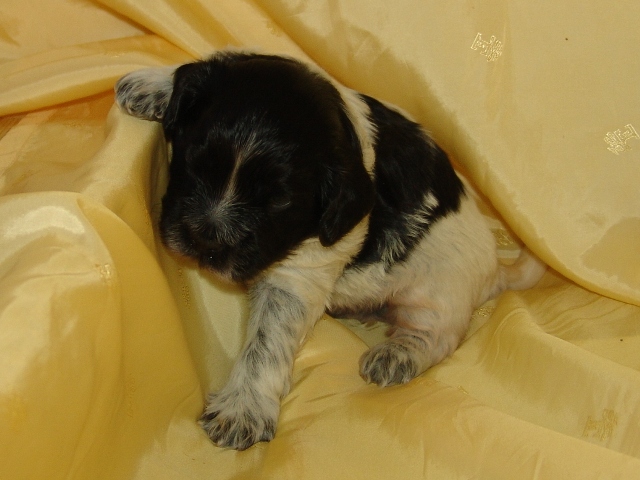 Wir sind nun wieder 1 Woche älter. Wir haben alle die Augen geöffnet und erkunden nun schon langsam unsere Wurfkiste und versuchen es auch mal mit klettern. Da gibt es vieles zu schnüffeln. Aber am liebsten kuscheln wir  zusammen mit Adry-Ana unserer Mama. Und wir schlafen unheimlich gern. Bis nächste Woche.